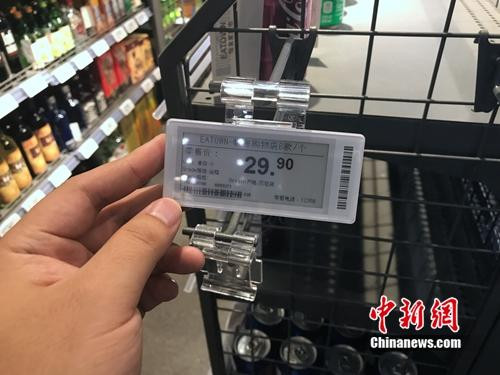無人超市中,每款商品上都貼有類似的RFID標簽。中新網(wǎng) 吳濤 攝