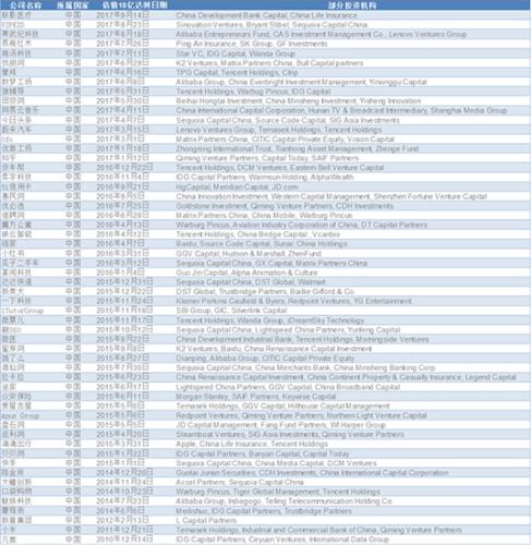 中國地區(qū)獨(dú)角獸公司名單 來源:CB Insights