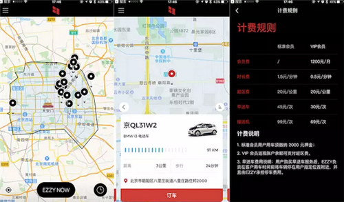 EZZY 的實(shí)際體驗(yàn)是這樣的:用戶在用駕照注冊了賬戶之后,EZZY 的 App 上會(huì)顯示你附近有沒有可以提供服務(wù)的車,根據(jù)導(dǎo)航找到可能停在任意停車位的 EZZY 分時(shí)租賃轎車之后直接用手機(jī) App 開車門,之后就是隨意駕駛了。駕駛結(jié)束之后也可以隨便停,然后用手機(jī)結(jié)賬,鎖門走人。