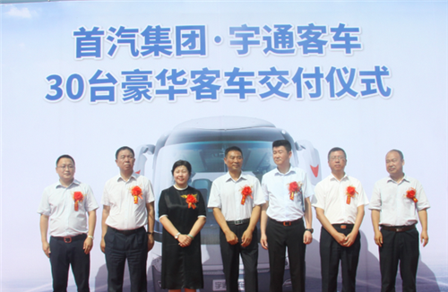 8月4日上午,鄭州宇通客車股份有限公司(簡稱為:宇通客車)與北京首汽(集團)股份有限公司(簡稱為:首汽集團)在首汽集團舊宮停車場舉行了交車儀式,30輛宇通豪華客車正式交付。首汽集團常務副總經(jīng)理高捷、宇通集團黨委副書記李遠征等領導,以及媒體代表共同見證了這一重要時刻。