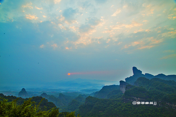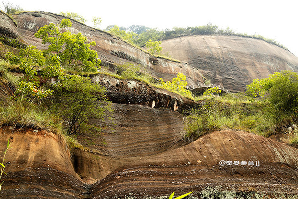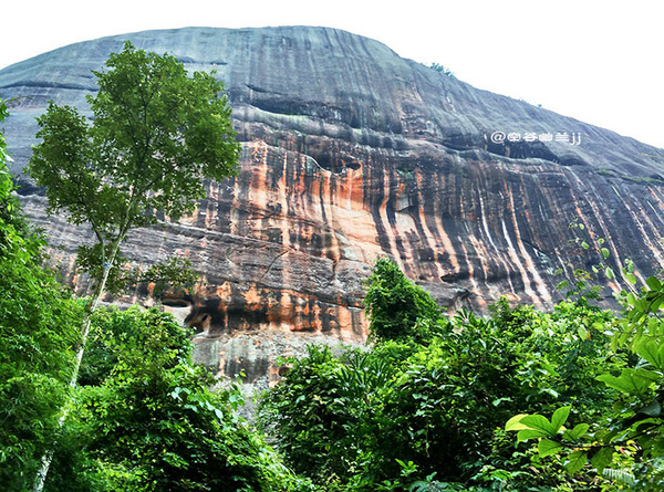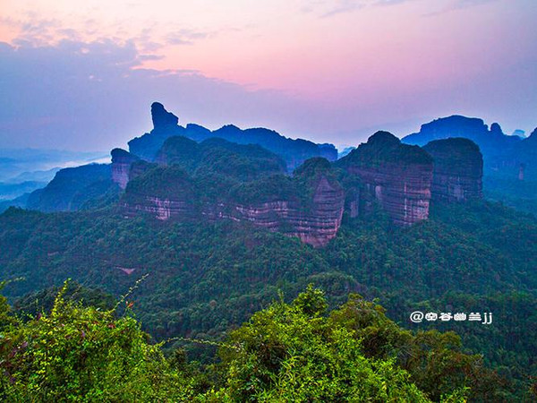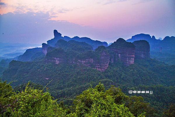丹霞山之美,是那種把雄奇包裹在雋秀里的含蓄之美。它并不張揚,遠望像是一幅優(yōu)美寧靜的水彩畫,顯示出一種優(yōu)雅之美、從容之美和曠達之美。雖然它的山勢并不高,但它的許多懸崖峭壁,像刀削斧鑿,直指藍天,無數(shù)奇巖美洞,隱藏于山中,景色相當奇麗。
