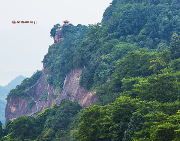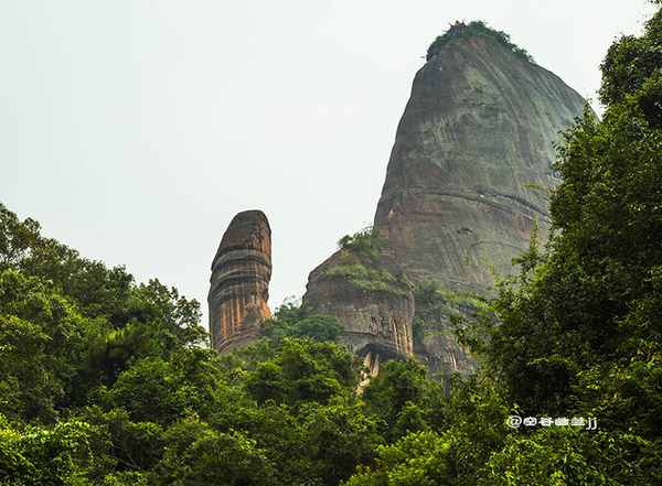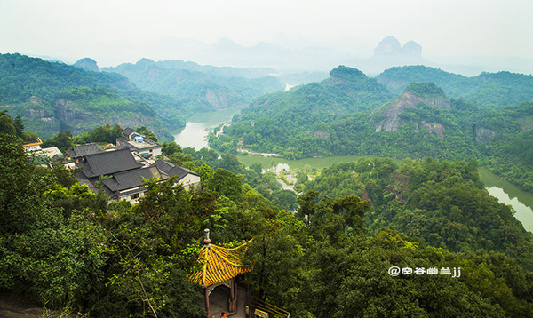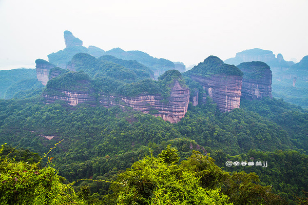 從山腳下乘索道上丹霞山主山之巔—寶珠峰,霧突突的天,在騰空而上的索道上縱目遙望置身于崇山峻嶺之中,不一會兒就到達寶珠峰頂,走到東部觀景臺(韶音亭)遠眺,群峰疊翠,連綿起伏,“無限風光在險峰”的詩情畫意,得到淋漓盡致的體現(xiàn),讓人感受到世界名山的神奇魅力。