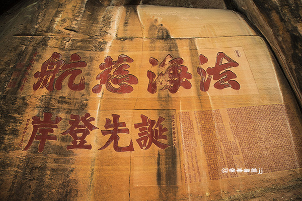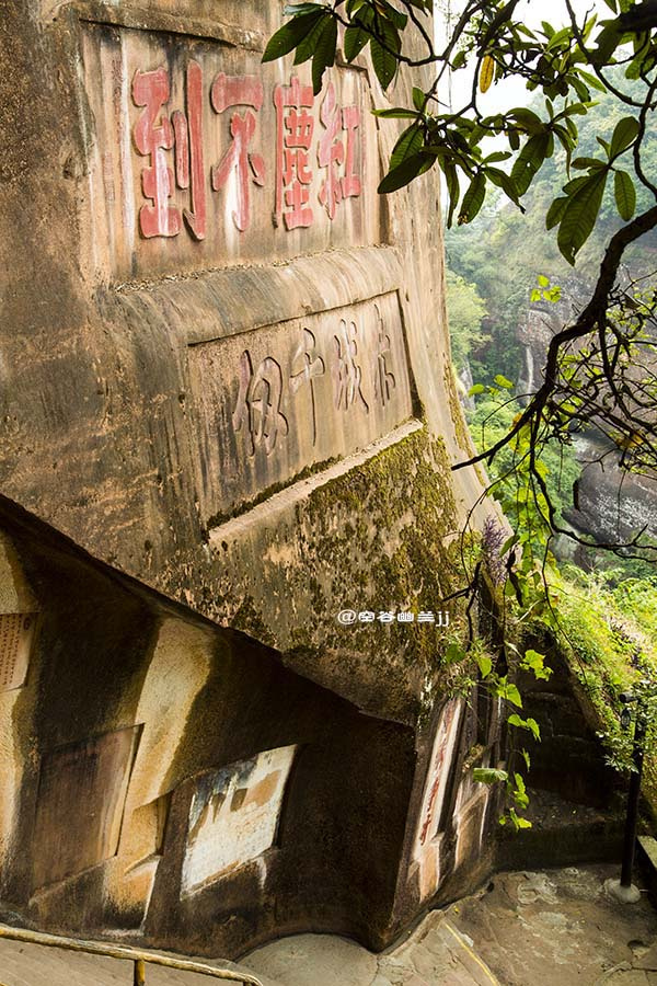 丹霞山的真味也是禪味。寂寂群山幽幽叢林,歷來是釋家修行隱逸之地。別傳寺寺前石上劈面就見“紅塵不到”四字佛偈,仿佛禪風拂面,梵聲過耳,把萬丈紅塵都拋到身后去。