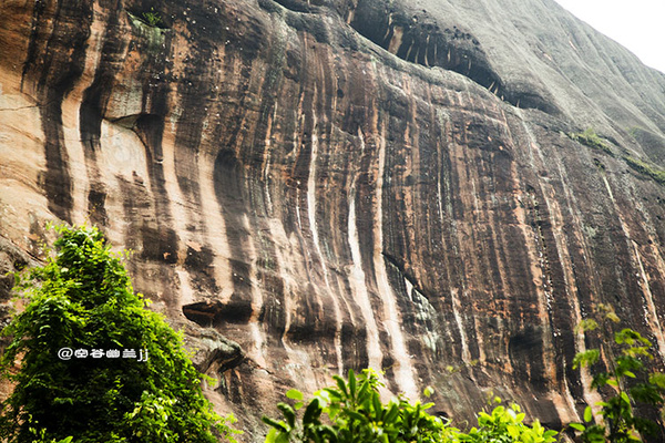 從通泰橋下來后,感覺時間還早就想去細美寨那邊看看是否可以上去。路過曬布石,諾大的山體,呈現(xiàn)出一道道的豎紋,好似染房在曬布。