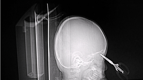 顧醫(yī)生說,根據(jù)當時臨床癥狀的判斷,雖然剪刀已經(jīng)接觸到了顱內(nèi)腦組織,但是并沒有出現(xiàn)這塊區(qū)域受到損傷而會體現(xiàn)出來的各項癥狀?!暗潜緛矸忾]的顱腔破損的話,就會有氣體進入,造成原本應(yīng)該與外界平衡的顱內(nèi)壓力不穩(wěn),形成氣顱,出現(xiàn)頭痛惡心嘔吐等現(xiàn)象,嚴重時還會危及生命。”