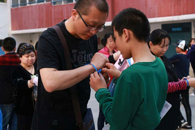 活動中還設置了感恩教育環(huán)節(jié),感謝老師深情教誨,感謝家長無私的愛。同學們在活動中一幕幕恩師情懷浮現(xiàn)眼前,一個個溫暖的愛的瞬間更讓大家流下了真誠的淚水。同學們?yōu)槔蠋熀图议L系上了象征祝福的藍色絲帶。并從內(nèi)心深處懂得要回報家長,回報恩師,懂得珍惜現(xiàn)在的擁有。