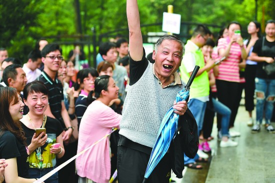 6月8日,一名幼兒家長(zhǎng)在合肥森林海幼兒園的抽簽搖號(hào)中簽后歡呼。