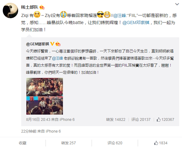 近日,一張章子怡發(fā)布會(huì)挺著“大肚”的照片引發(fā)網(wǎng)友熱議,雖然只是假扮孕婦,卻引來(lái)大波網(wǎng)友詢問(wèn)何時(shí)準(zhǔn)備要寶寶,可見(jiàn)網(wǎng)友對(duì)兩人感情生活的關(guān)注。8月16日,鄧紫棋在微博上曬出汪峰為其過(guò)生日的照片,17日中午,汪峰轉(zhuǎn)發(fā)此微博并稱要為學(xué)員們加油,17日下午,章子怡回復(fù)汪峰:“Ziqi有~Ziyi沒(méi)有,等著回家跪榴蓮?!?/font>