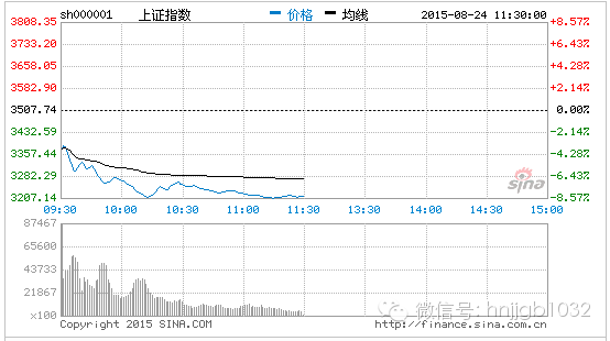截至午間收盤,滬指跌8.45%,跌296.55點(diǎn),報3211.2點(diǎn),成交2434.36億元;創(chuàng)業(yè)板跌8.05%,跌188.43點(diǎn),報2153.53點(diǎn),成交193.74億元;深成指跌7.72%,跌918.62點(diǎn),報10983.42點(diǎn)。