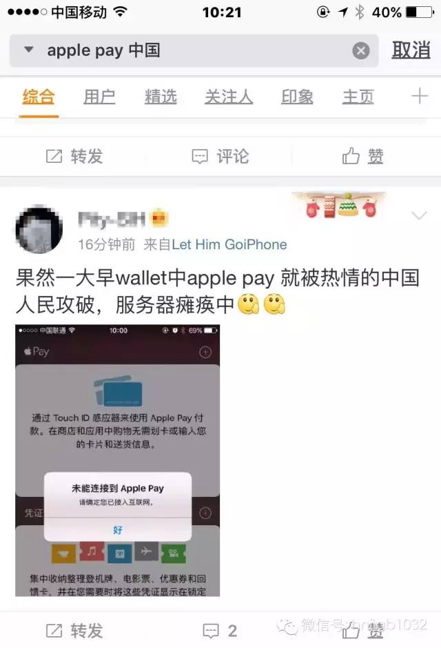 今天早上6點(diǎn)05分,蘋果ceo timcook發(fā)了一條微博宣告Apple Pay正式入華!
