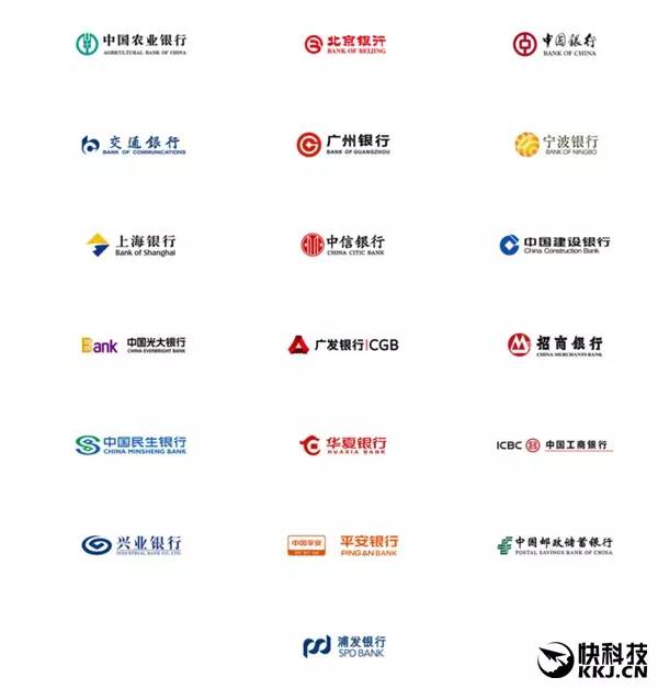 中國銀行、中國農(nóng)業(yè)銀行、中國工商銀行、中國建設(shè)銀行、招商銀行、中信銀行、浦發(fā)銀行、興業(yè)銀行、廣發(fā)銀行、廣州銀行、上海銀行、平安銀行、中國民生銀行、中國光大銀行、中國郵政儲(chǔ)蓄銀行、交通銀行、北京銀行、寧波銀行、華夏銀行。