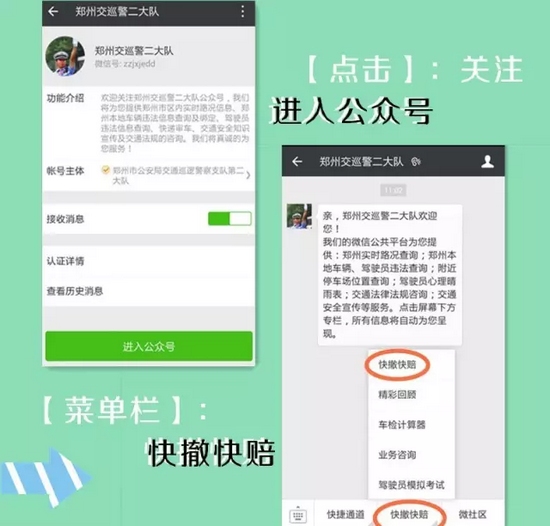 支隊(duì)科研所此次研發(fā)的交通事故快賠快撤功能,跳出了以往單方損失2000元以下的限制,只要在交警二大隊(duì)轄區(qū):嵩山路(含)嵩山路以西區(qū)域及中原區(qū)、西開發(fā)區(qū)全境,公共道路上發(fā)生的兩車事故,車輛能夠正常駕駛,沒有人員受傷,就可以通過“鄭州交巡警二大隊(duì)微信公共平臺”進(jìn)行快撤快賠處理。