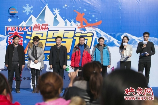 準(zhǔn)備工作已經(jīng)就緒,車友們已經(jīng)按捺不住要滑雪的心情了,在滑雪正式開始之前,1041《MORE FUN 音樂》主持人王哲和《馬路歡樂派—早間》主持人彎彎,禹州市大鴻寨臥佛山旅游開發(fā)有限公司總經(jīng)理王鋒偉先生也來給大家加油打氣了。