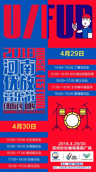 河南交通廣播25周年臺(tái)慶特別獻(xiàn)禮,2018河南優(yōu)放音樂節(jié)——“Family Day”。4月29、30日,鄭開大道杉杉奧特萊斯,如約而至。