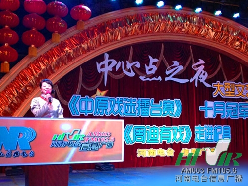 昨天晚上,河南人民廣播電臺(tái)2012中心點(diǎn)杯《中原戲迷擂臺(tái)賽》10月月冠軍賽在開封杞縣舉行。本次月冠軍賽由河南人民廣播電臺(tái)、河南省戲劇家協(xié)會(huì)、河南省戲迷協(xié)會(huì)聯(lián)合主辦,河南電臺(tái)信息廣播、杞縣中心點(diǎn)審美造型設(shè)計(jì)、河南藝之道文化傳播有限公司承辦,河南電臺(tái)經(jīng)濟(jì)廣播、農(nóng)村廣播協(xié)辦。