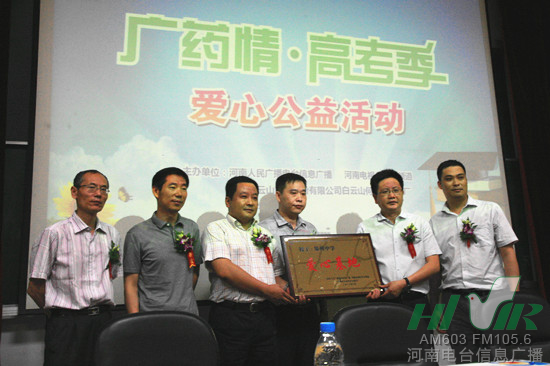 6月3號(hào),河南電臺(tái)信息廣播聯(lián)合河南電視臺(tái)第九頻道、廣州白云山何濟(jì)公制藥廠,在鄭州大學(xué)共同舉辦了以“愛(ài)心助高考 迎接新人生”為主題的“廣藥情 高考季”系列愛(ài)心公益活動(dòng)。
