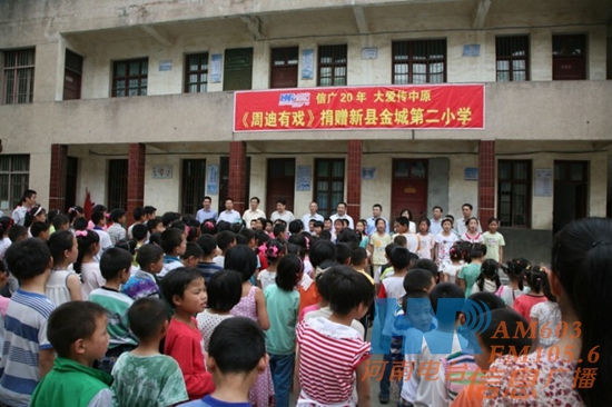 信廣20年,大愛傳中原。5月30日,河南電臺信息廣播《周迪有戲》欄目組攜愛心基金走進信陽新縣金城小學和廟墩村小學,為孩子們捐助了4間教室和生活學習用品。