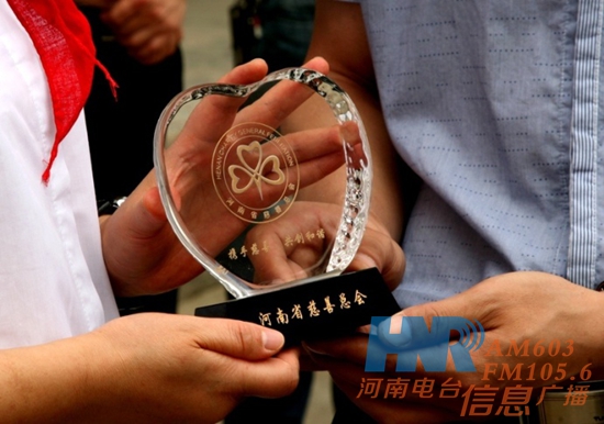 河南省慈善總會捐贈部主任李元春代表河南省慈善總會為《周迪有戲》欄目組頒發(fā)了“最美欄目”公益先行愛心獎杯。