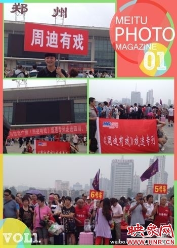 2014年8月17日,《周迪有戲》戲迷專列將滿載600名我省戲迷一同前往四川、重慶,開(kāi)始7天的文化之旅,出發(fā)儀式于下午1:30分在鄭州火車站西廣場(chǎng)舉行。