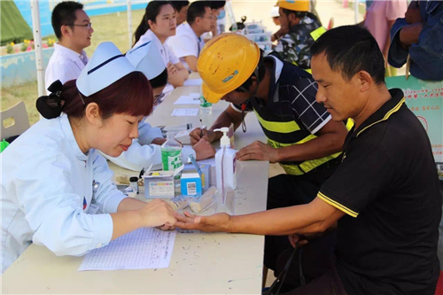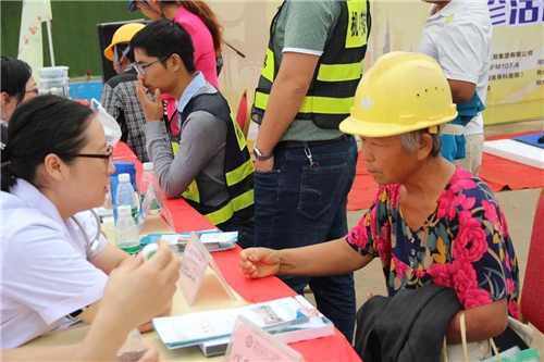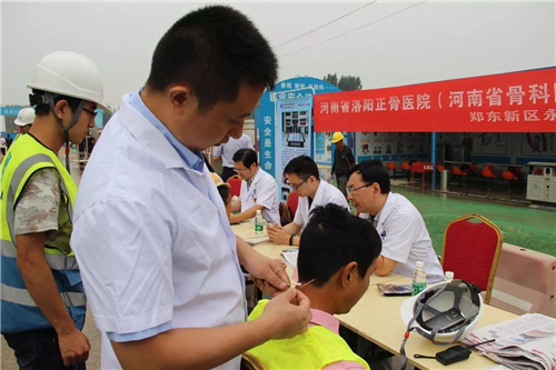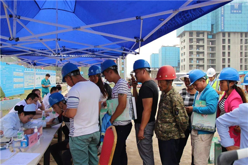 一大早,五大醫(yī)院的白衣天使們,就來(lái)到了中建三局鄭州航空港棚戶區(qū)改造的施工現(xiàn)場(chǎng)。開始準(zhǔn)備工作,希望能夠更好地為建筑工人們做健康檢查。