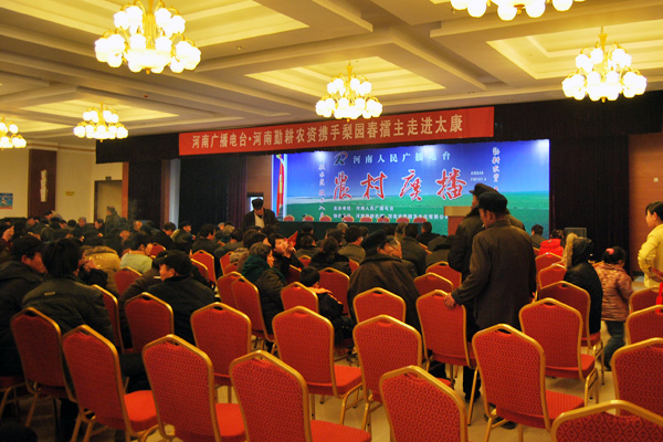為凈化農(nóng)資市場(chǎng)、保護(hù)農(nóng)民利益、服務(wù)農(nóng)業(yè)生產(chǎn),河南電臺(tái)農(nóng)村廣播成功舉辦——“3.15放心農(nóng)資下鄉(xiāng)進(jìn)村活動(dòng)”。3月14日清晨冒雨趕赴河南省周口市太康縣,邀請(qǐng)省會(huì)相關(guān)職能部門(mén)領(lǐng)導(dǎo)現(xiàn)場(chǎng)宣傳科學(xué)種田知識(shí),現(xiàn)場(chǎng)抽獎(jiǎng)為當(dāng)?shù)剞r(nóng)民發(fā)放放心農(nóng)資。并邀請(qǐng)河南勤耕農(nóng)資等企業(yè)、文化界相關(guān)人士帶去精彩的互動(dòng)與節(jié)目演出。戲曲、魔術(shù)、雜技、變臉、抽獎(jiǎng)等穿插互動(dòng)!精彩紛呈!高潮迭起!當(dāng)天從周口各地聞?dòng)嵜坝贲s來(lái)的農(nóng)民把活動(dòng)現(xiàn)場(chǎng)擠得水泄不通,鄉(xiāng)親們臉上洋溢著滿(mǎn)意的笑容,雖然天氣驟冷,但現(xiàn)場(chǎng)互動(dòng)把氣氛一次次推向了高潮!在歡聲笑語(yǔ)中,大家不僅對(duì)今年3.15的主題“消費(fèi)與服務(wù)”有了更深層次的理解,而且對(duì)農(nóng)村廣播的“心連心”惠農(nóng)活動(dòng)更加喜愛(ài)并充滿(mǎn)期待!