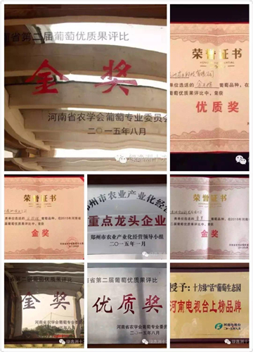 2016年8月5日,由鄭州市農(nóng)業(yè)農(nóng)村工作委員會與鄭州市休閑觀光農(nóng)業(yè)協(xié)會會聯(lián)合舉辦的2016中國鄭州葡萄節(jié)精品葡萄品鑒會,河南緑逸洲農(nóng)業(yè)科技有限公司十方緣“活”葡萄種植基地選送的“自然農(nóng)法”生產(chǎn)的優(yōu)質(zhì)葡萄品種醉金香喜獲金獎。