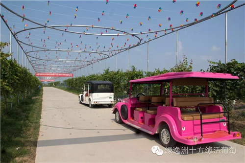 目前基地有葡萄采摘、餐飲服務,建設有800平方米的接待品嘗區(qū)、可以停泊300臺車輛的生態(tài)停車場、容納150左右的餐飲服務中心、觀光電瓶車、花海、黃河濕地文化區(qū)、生態(tài)蔬菜種植區(qū)、家禽家畜動物養(yǎng)殖區(qū)等配套觀光休閑項目種植基地。