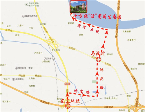 ?。ㄟB霍高速柳林站—東三環(huán)北站—鄭新黃河大橋方向向北300米—右轉(zhuǎn)至鴻寶路 -左轉(zhuǎn)至鴻苑路—黃河大堤向西2公里)