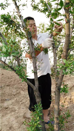 農(nóng)業(yè)生產(chǎn)過程的管理,對石榴的品控尤為關(guān)鍵。既然是農(nóng)民就要會(huì)種地,種石榴。要學(xué)習(xí)扦插樹苗、修剪果樹、施肥、翻地。父輩是靠經(jīng)驗(yàn),小綱他們照著做,慢慢發(fā)現(xiàn)經(jīng)驗(yàn)有時(shí)也會(huì)錯(cuò),每個(gè)人說法不一,這就要靠自己一點(diǎn)點(diǎn)去實(shí)踐,他們也會(huì)把自己摸索的技術(shù)通過萬氏石榴合作社的微信公眾號(hào)分享給更多人。
