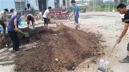 ▼金田地種植人員正在施有機(jī)肥