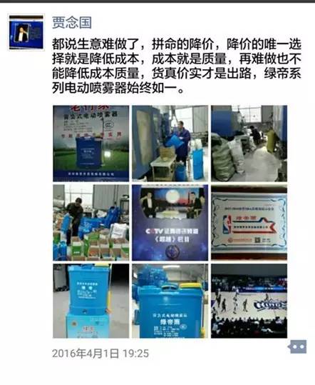 任何一名企業(yè)家,都有困惑的時(shí)候。開(kāi)始的時(shí)候,生產(chǎn)電動(dòng)噴霧器的公司也就只有他這一家,如今在河南省內(nèi)達(dá)到了100多家,全國(guó)的生產(chǎn)廠家有1000多家,賈總覺(jué)得目前市場(chǎng)競(jìng)爭(zhēng)是比較激烈的,仿造的甚至是假冒的產(chǎn)品還時(shí)有出現(xiàn);產(chǎn)品的利潤(rùn)也沒(méi)有以前高了;隨著原材料及工人工資等成本的增加,批發(fā)價(jià)格也有所調(diào)高;這一點(diǎn),有時(shí)在賈總的微信里也看出了一些無(wú)奈和感慨?! ?/p>