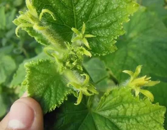 當(dāng)氣溫降低后,尤其是伴隨雨雪天氣發(fā)生時(shí),由于太陽(yáng)光輻射減少會(huì)導(dǎo)致地溫降低,這樣一來(lái)植物的地上組織和地下根系的呼吸作用都會(huì)下降,呼吸下降后生理代謝就會(huì)緩慢,植物吸收肥水的能力就會(huì)減弱,如果此時(shí)作物正處于苗期則易出現(xiàn)僵苗的現(xiàn)象;如果處于開(kāi)花座果期,則常常表現(xiàn)為各種生理性病害的發(fā)生,如花打頂。這種癥狀在黃瓜等瓜類(lèi)蔬菜上最為常見(jiàn),即植株的生長(zhǎng)點(diǎn)積在大量雌花或小瓜,植株停止生長(zhǎng)?;ù蝽?shù)某霈F(xiàn)是由于低溫促使了花芽過(guò)度分化,雌花數(shù)量增加,而植株缺乏足夠的養(yǎng)分供其生長(zhǎng),蔓不能伸長(zhǎng),造成雌花生在在植株的頂端。