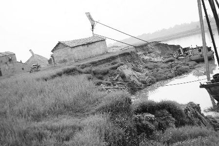 采沙船非法采沙導(dǎo)致灘地垮塌、良田被毀。