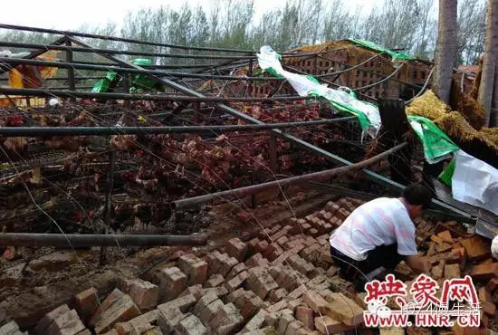 此外,滑縣留固鎮(zhèn)和老廟鄉(xiāng)的部分養(yǎng)雞廠也遭受到了重創(chuàng)。老廟鄉(xiāng)養(yǎng)雞戶宋女士告訴記者:“冰雹大約持續(xù)了20多分鐘,把雞舍全都砸塌了,有8000多只雞,死的死傷的傷,看著心疼死了。”