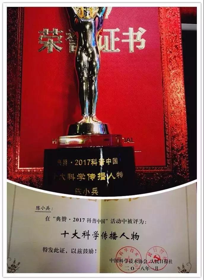 陳小兵當(dāng)選“2017年十大科學(xué)傳播人物”,組委會(huì)給予他的頒獎(jiǎng)詞是,在緊張的臨床工作之余,他熱心醫(yī)學(xué)科普,下基層、走街道、進(jìn)校園、入社區(qū),腳步走遍中原,做科普講座300余場,受眾十余萬人,積極推廣“預(yù)防為主”的防癌理念,為腫瘤科普殫精竭慮,被譽(yù)為“中原腫瘤科普第一人”。