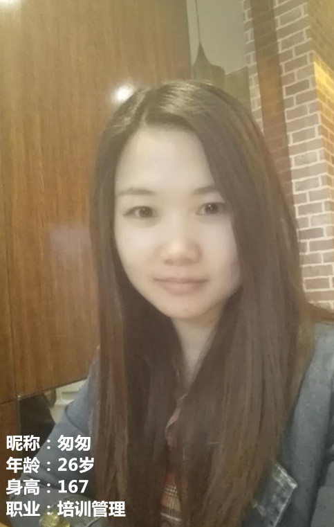 大家好,我是匆匆,今年26歲,在鄭州從事培訓(xùn)管理工作。繁忙的工作和生活,讓我不知不覺的剩了下來,回頭觀望來時的路,卻驚訝地發(fā)現(xiàn)這么多年我的人生旅途中的桃花卻沒有盛開過,不禁陷入憂思和反思中,為什么我的條件也不差,卻一直過著單身的生活,或許自己太過忙碌,忘記了身邊的風(fēng)景,或許平時太過理性,在成長的過程中太過注重成熟忽視了一見傾心的偉大力量,又或許自己不夠勇敢,不敢去追求那份不論位置但求無愧于心的愛情。時光匆匆的走過,不知不覺我已經(jīng)過了二十五開始進(jìn)入女人真正衰老的旅程,好害怕在這最美好年華任憑自己悄悄地老去,因此今天我為了自己的幸福勇敢地跨出了第一步,你是在那個地方等我的人嗎,對于另一半說實(shí)話我還真的沒有什么條條框框,但是就像買鞋子,不要求名貴漂亮,但一定要合腳。我希望他可以成熟、穩(wěn)重,可以作為一個依靠在我身邊,無論遇見什么事情都可以在一起承擔(dān),至于長相及其他條件,希望他身高175cm以上吧,愿意在鄭州定居,可以養(yǎng)活自己和自己的父母即可。
