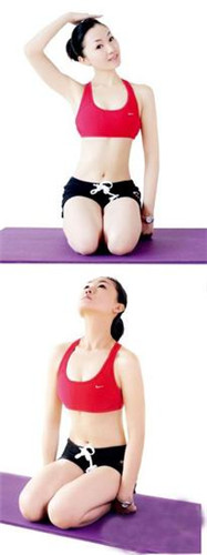 動(dòng)作要領(lǐng):頭部向左拉伸時(shí),用左手扶頭右側(cè);頭部向右拉伸時(shí),用右手扶頭左側(cè)。每個(gè)動(dòng)作保持30秒,前15秒順向拉伸,后15秒對(duì)抗拉伸。頭部向后拉伸時(shí),慢慢向后抬到最高處,感覺頸部完全拉伸保持30秒,返回至初始位置。每個(gè)動(dòng)作各做5次,做2~3組進(jìn)行一次頭部的正向和逆向旋轉(zhuǎn)。每回至少做5組,每組之間要有間隙。小貼士:注意手部力量不要過大,輕輕按壓。頸部不要松懈,要有力量支撐。