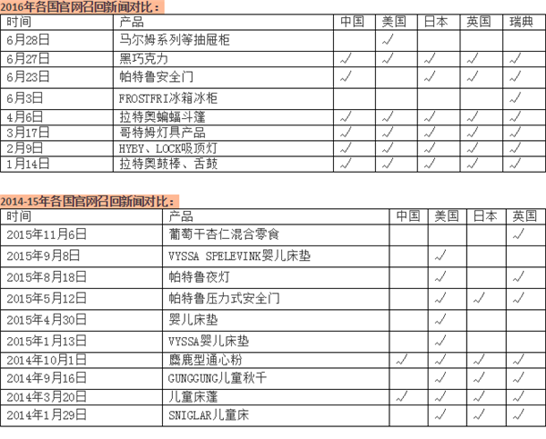 數(shù)據(jù)顯示,2016年宜家產(chǎn)品召回中,中國(guó)有兩次未與其他國(guó)家同步,包括FROSTFRI冰箱和馬爾姆系列等抽屜柜。而在2014-2015年間,宜家10類(lèi)產(chǎn)品召回,8次不涉及中國(guó)。相比之下,美國(guó)僅有一次被“落下”。