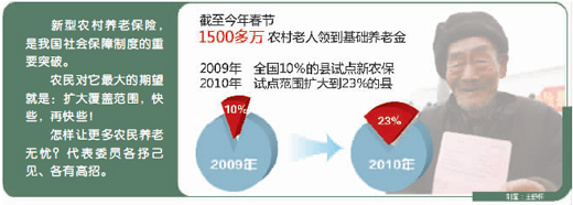 呂濱:江西今年把新農(nóng)保參保繳費(fèi)人數(shù)列入民生工程考核指標(biāo),與各設(shè)區(qū)市簽訂了責(zé)任狀。2010年,省財(cái)政專項(xiàng)安排新農(nóng)保預(yù)算資金3.5億元,用于224萬參保適齡人員的繳費(fèi)補(bǔ)貼和為1.2萬農(nóng)村重度殘疾人員代繳全部最低標(biāo)準(zhǔn)的養(yǎng)老保險(xiǎn)費(fèi),并確保43萬60周歲以上老年人基礎(chǔ)養(yǎng)老金的按時足額發(fā)放。