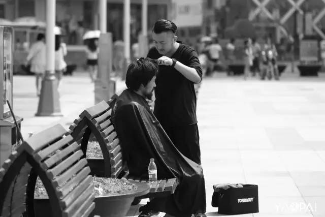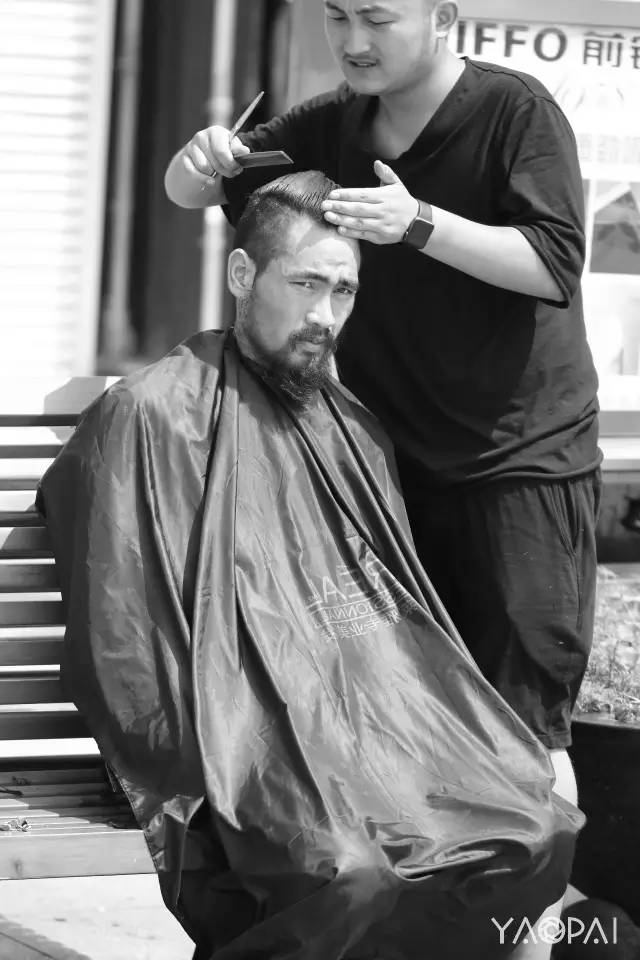 見到他,是在烈日下的二七廣場,話不多,不好意思的接過了我們遞去的一瓶水。想了想,接受了紅濤提出為他免費理發(fā)的想法。