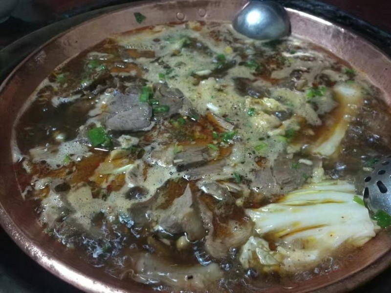銅瓢牛肉也是不可錯(cuò)過(guò)的美味,超大的銅瓢盛著滿鍋的帶皮牛肉和牛雜,蘸小米椒腐乳調(diào)料吃超過(guò)癮。最受食客歡迎的還要數(shù)瓢里煮得香香辣辣糯糯軟軟的牛舌牛筋牛皮,直可以把人吃得眼皮出汗。