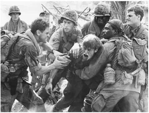 同樣是關(guān)于越戰(zhàn)的片子,在奧利弗·斯通的《野戰(zhàn)排》中用到了美國作曲家塞繆爾·巴伯《弦樂的柔板》,戰(zhàn)爭(zhēng)的滿目瘡痍配上這極度哀傷的樂曲,緩慢的音調(diào)猶如是從心底發(fā)出的對(duì)死者深深的悲鳴。