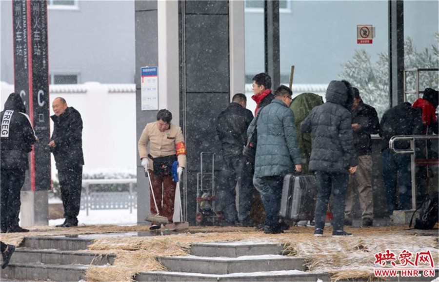 今天白天,全省陰天有小到中雪,其中黃河以南和濟(jì)源、焦作兩地區(qū)及新鄉(xiāng)地區(qū)西部部分地區(qū)有大雪,局部暴雪,淮河以南大部分地區(qū)有雨夾雪。