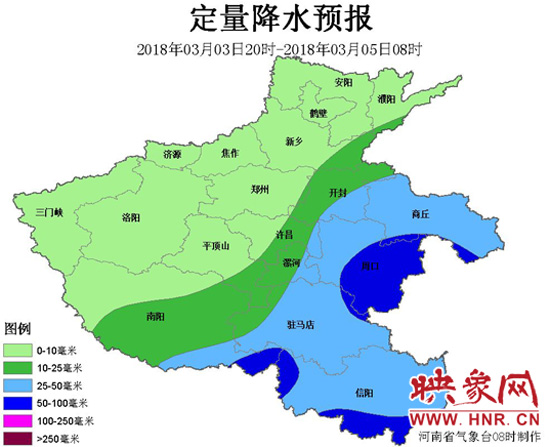 此次過程全省大部分地區(qū)有小到中雨,主要降水時段出現(xiàn)在3日夜里-4日白天,其中東部、南部有大雨,局部暴雨,并伴有雷電。過程雨量豫東、豫南達(dá)20-50毫米,其它地區(qū)5~20毫米,最大雨量可達(dá)10-20毫米/小時。另外,4日全省還會有4-5級偏北風(fēng),最高氣溫較前期下降7-9℃。