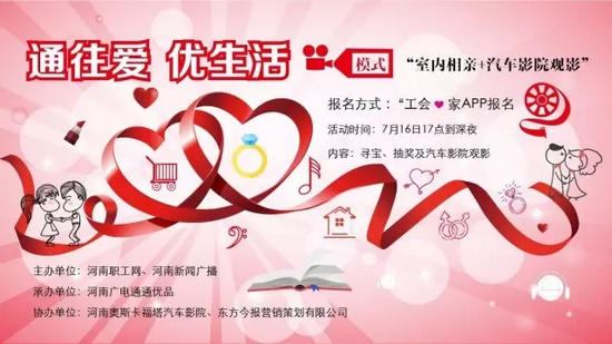河南新聞廣播聯(lián)合河南省總工會職工網(wǎng)、河南廣電通通優(yōu)品、河南奧斯卡福塔汽車影院等多家單位,為廣大聽眾、單身職工舉辦一期攜手憧憬新生活,體驗高品質(zhì)生活為主題的相親活動——“通往愛,優(yōu)生活”。