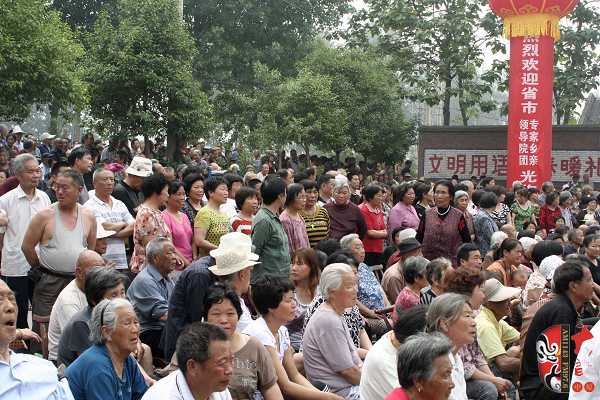 來自省會(huì)的戲劇專家級(jí)各地市院團(tuán)代表步入曲劇宗師·一代名伶朱六來先生紀(jì)念碑揭碑儀式會(huì)場(chǎng)