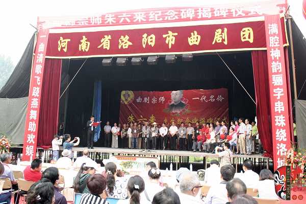 5月9日,由河南省藝術(shù)研究院、省戲劇家協(xié)會(huì)、省戲曲表演學(xué)會(huì)、洛陽(yáng)市文廣新局、洛陽(yáng)市戲劇家協(xié)會(huì)、洛陽(yáng)市曲劇院主辦的,曲劇宗師?一代名伶朱六來先生紀(jì)念碑揭碑儀式在其故里洛陽(yáng)市關(guān)林鎮(zhèn)大東村舉行。來自省內(nèi)的著名戲劇評(píng)論家、劇作家馬紫晨,河南省藝術(shù)研究院院長(zhǎng)方可杰,戲劇評(píng)論家譚靜波,曲劇老藝術(shù)家劉衛(wèi)生、馬騏、牛長(zhǎng)欣、高桂枝、郭鳳娥等,以及各地市兄弟院團(tuán)代表參加了本次揭碑儀式。同時(shí),著名曲劇表演藝術(shù)家“曲劇泰斗”馬騏,有南牛北馬之稱的南牛著名曲劇表演藝術(shù)家牛長(zhǎng)欣,以及各兄弟院團(tuán)的著名演員獻(xiàn)上了精彩的專場(chǎng)演出。