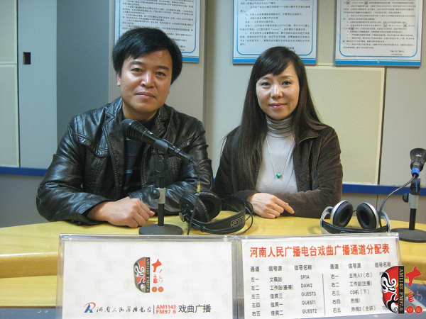左起:河南虎美玲藝術(shù)學(xué)校主任張曉勝、校長(zhǎng)張茵音,著名戲曲節(jié)目主持人、河南電臺(tái)戲曲廣播當(dāng)家小生月陽(yáng)