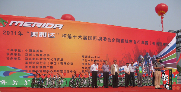 2011年5月28日,由中國奧委會(huì)主辦,鄭州市體育總會(huì)、鄭州市總工會(huì)承辦,鄭東新區(qū)教育文化體育局、美利達(dá)自行車(中國)有限公司、河南電臺(tái)戲曲廣播、河南體彩管理中心鄭州東區(qū)分中心、華北水利水電學(xué)院、鳳凰網(wǎng)、鄭州太古可口可樂有限公司、新華人壽保險(xiǎn)有限公司河南分公司協(xié)辦的第十六屆國際奧委會(huì)主席杯全國百城市自行車賽鄭州預(yù)賽區(qū)的比賽在鄭東新區(qū)的商務(wù)內(nèi)環(huán)公路舉行。