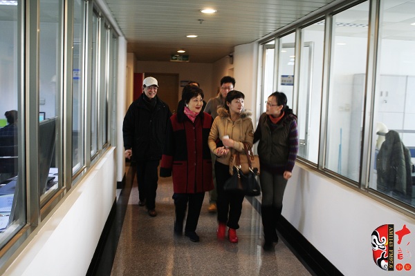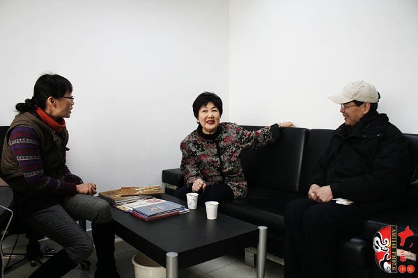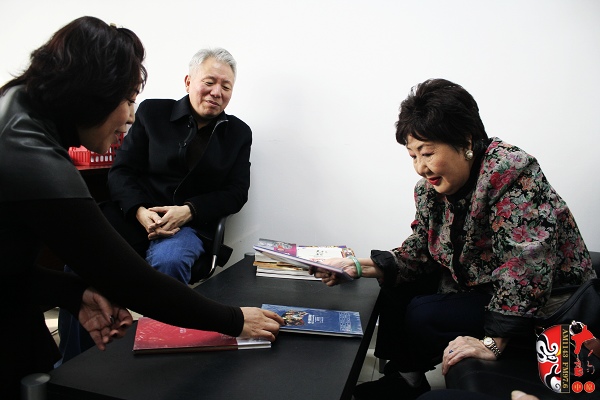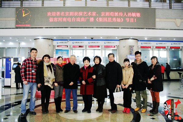 河南電臺戲曲廣播副總監(jiān)張彤(右一)及主持人迎接京劇荀派傳人孫毓敏(左二)、